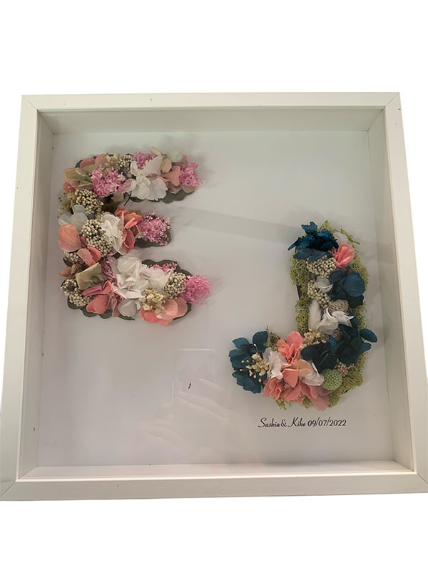 Cuadro doble con letras de flores preservadas